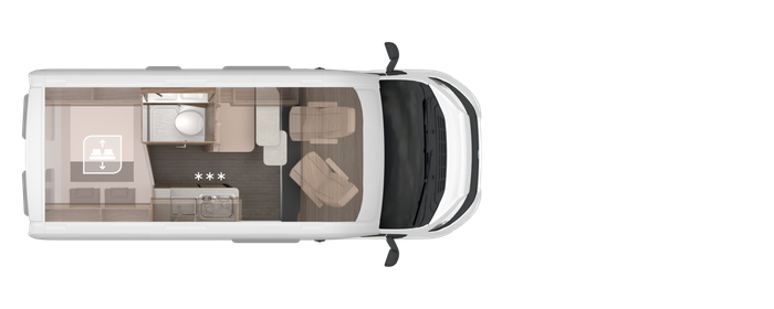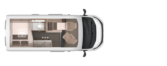 • Dinettensitzbank mit verschiebbarem Seitenauszug auch während der Fahrt